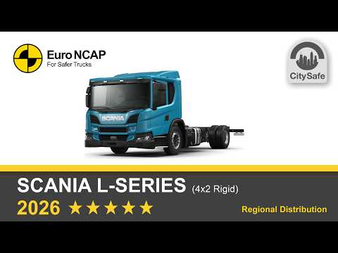 The Scania L-series 4x2 rigid was rated as a partner to the P-series 4x2 rigid and the results verified very similar performance between the vehicles. The Scania L-series achieved very good performances in both Safe Driving and Collision Avoidance, earning our CitySafe award alongside its 5 stars. It is available with all of the driver assistance systems Euro NCAP assess and they perform well to support urban to highway driving. The ultra-low cab highly benefits direct vision, although the conventional rear view mirrors can create localised blind areas. A camera monitor system provide a continuous view around the front nearside corner of the vehicle. The Scania L-series is available with a top-performing AEB system for nearside turn collisions with cyclists which is especially important for operation in urban areas. The AEB system also performs well in frontal vehicle, pedestrian and cyclist scenarios. Overall, the can be a very safe choice for regional distribution operations when specified with the correct optional equipment.